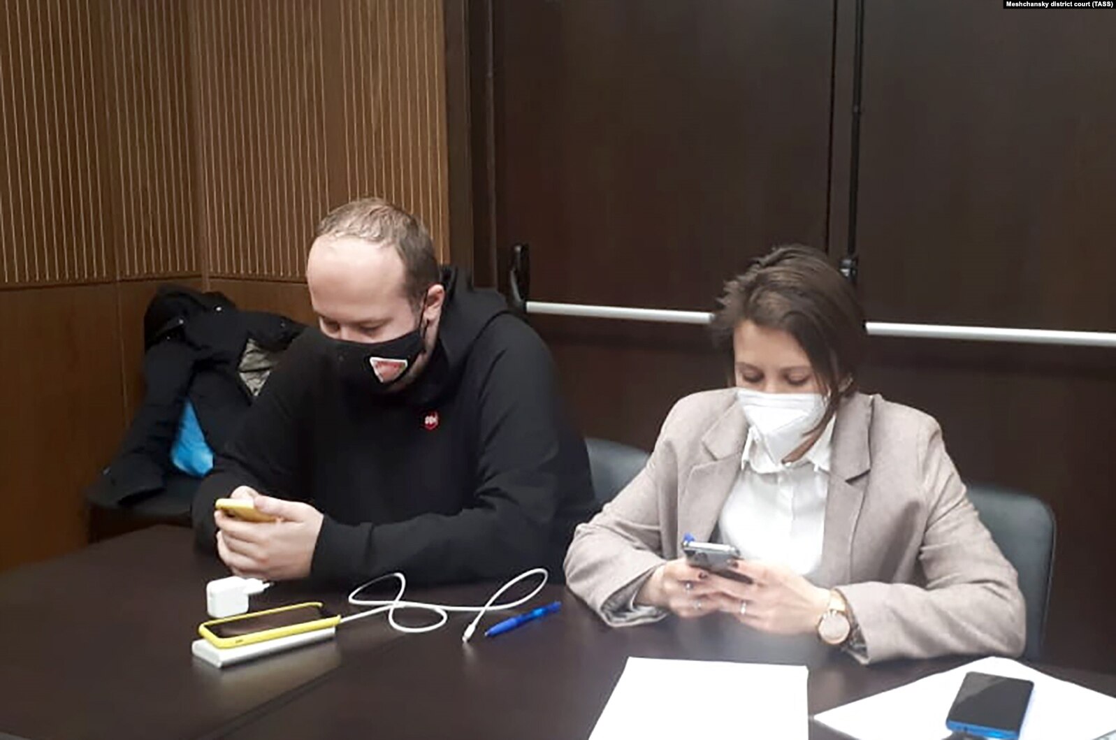 Сотрудник "Фонда борьбы с коррупцией" (ФБК) Георгий Албуров во время рассмотрения административного дела в Мещанском суде. Мещанский суд Москвы арестовал Георгия Албурова на 10 суток за призыв выйти на несанкционированную акцию протеста 23 января